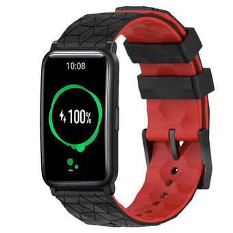 Για το Honor Watch ES 20 χιλιοστά ποδοσφαιρικό μοτίβο δύο χρωμάτων ζώνη σιλικόνης ρολογιού (μαύρο + κόκκινο)