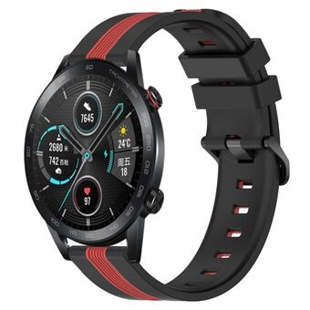 Για το Honor Magic Watch 2 46mm 22mm Κάθετη ζώνη ρολογιού σιλικόνης δύο χρωμάτων (μαύρο + κόκκινο)