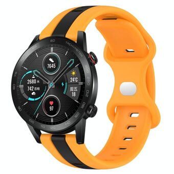 For Honor Magic Watch 2 46mm 20mm Butterfly Buckle Two-Color Silicone Watch Band(Black+Yellow)