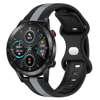 For Honor Magic Watch 2 46mm 20mm Butterfly Buckle Two-Color Silicone Watch Band(Black+Grey)