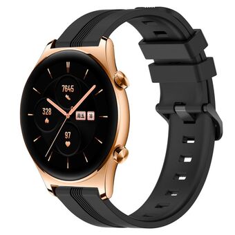 For Honor Watch GS 3 22mm Concave Striped Slicone Watch Band(Black)