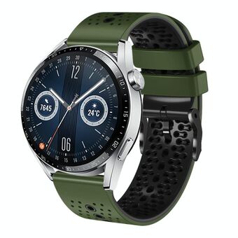 Για το Huawei Watch GT3 46mm 22mm διάτρητη ζώνη ρολογιού σιλικόνης δύο χρωμάτων (πράσινο στρατού + μαύρο)