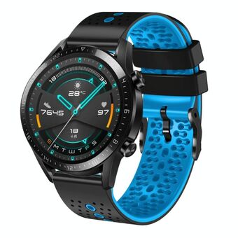 Για το Huawei GT2 46mm 22mm διάτρητη ζώνη ρολογιού σιλικόνης δύο χρωμάτων (μαύρο + μπλε)