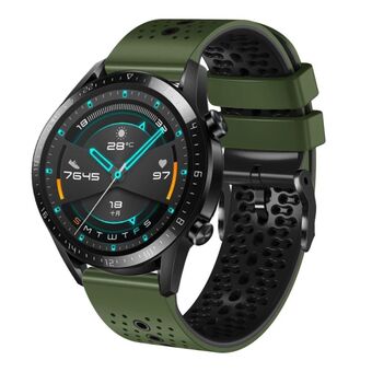 Για το Huawei GT2 46mm 22mm διάτρητη ζώνη ρολογιού σιλικόνης δύο χρωμάτων (πράσινο στρατού + μαύρο)