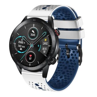 Για το Honor Magic Watch 2 46mm 22mm διάτρητη ζώνη ρολογιού σιλικόνης δύο χρωμάτων (λευκό + μπλε)