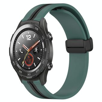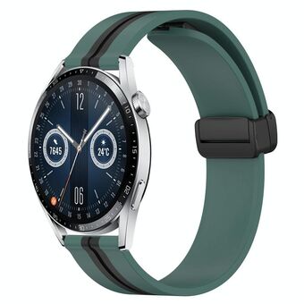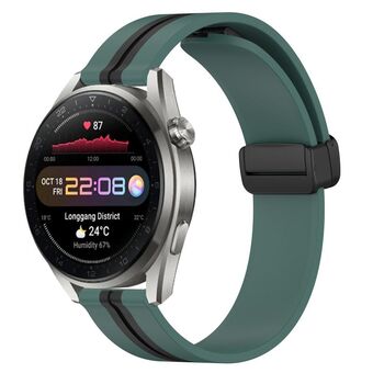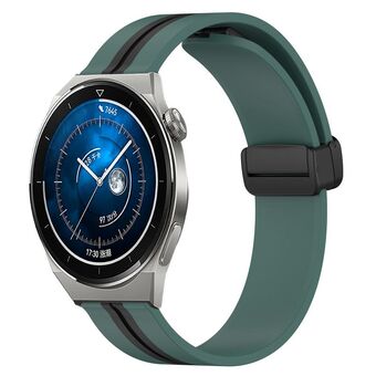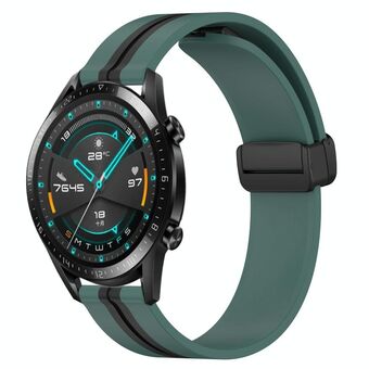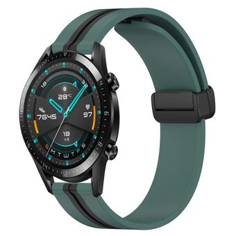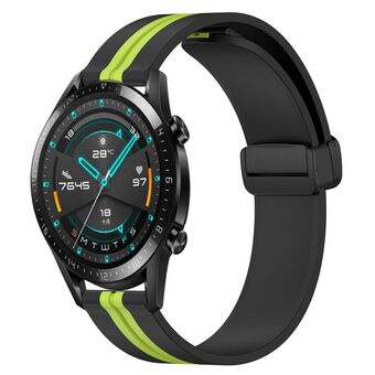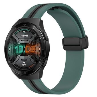Για Huawei GT2 46mm 22mm Πτυσσόμενο μαγνητικό κούμπωμα ζώνη ρολογιού σιλικόνης (μαύρο + πράσινο χρώμα)