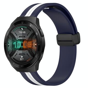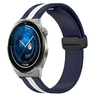 Για Huawei GT2 46mm 22mm Πτυσσόμενο μαγνητικό κούμπωμα σιλικόνης ρολόι μπάντα (Midnight Blue + Λευκό)