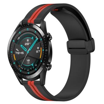 Για Huawei GT2 46mm 22mm Πτυσσόμενο μαγνητικό κούμπωμα ζώνη ρολογιού σιλικόνης (κόκκινο + μαύρο)