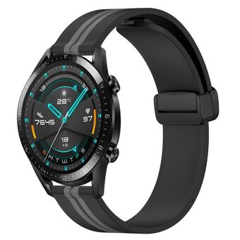 Για Huawei GT2 46mm 22mm Πτυσσόμενο μαγνητικό κούμπωμα ζώνη ρολογιού σιλικόνης (Λευκό + Μαύρο)
