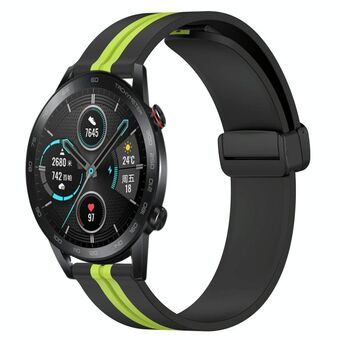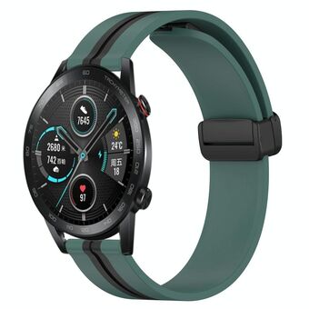 Για το Honor Magic Watch 2 46mm 22mm Πτυσσόμενο μαγνητικό κούμπωμα ζώνη ρολογιού σιλικόνης (μαύρο + πράσινο χρώμα)