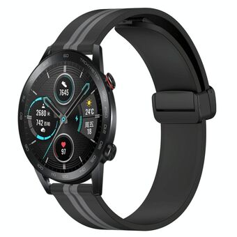 Για το Honor Magic Watch 2 46mm 22mm Πτυσσόμενο μαγνητικό κούμπωμα ζώνη ρολογιού σιλικόνης (μαύρο + γκρι)