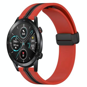 Για το Honor Magic Watch 2 46mm 22mm Πτυσσόμενο μαγνητικό κούμπωμα ζώνη ρολογιού σιλικόνης (κόκκινο + μαύρο)