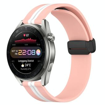 Για το Huawei Watch 3 Pro Νέο 22mm Πτυσσόμενο μαγνητικό κούμπωμα ζώνη ρολογιού σιλικόνης (ροζ+λευκό)