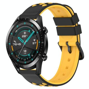 Για το Huawei Watch GT2 42mm 20mm Δύο-χρώμα πορώδες λουράκι σιλικόνης ρολόι (μαύρο + κίτρινο)