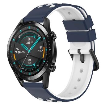 Για το Huawei Watch GT2 42mm 20mm Δύο χρωμάτων πορώδες λουράκι σιλικόνης (Μπλε μεσάνυχτα + Λευκό)