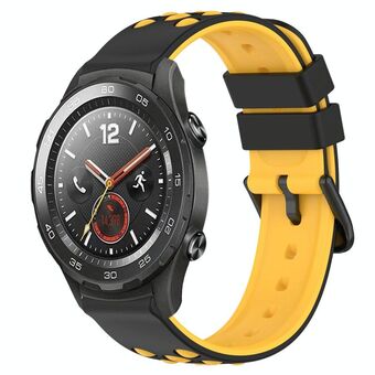 Για το Huawei Watch 2 20 χιλιοστά δύο χρωμάτων πορώδη ζώνη ρολογιού σιλικόνης (μαύρο + κίτρινο)