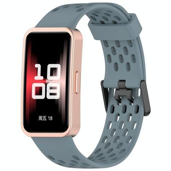 For Huawei Band 9 / 9 NFC / 8 / 8 NFC Hole Style Dual Black Buckle Silicone Watch Band(Rock Ash)