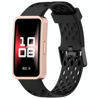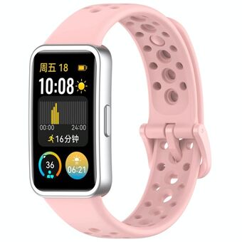 For Huawei Band 9 / 9 NFC / 8 / 8 NFC Hole Style Dual Black Buckle Silicone Watch Band(Pink)