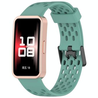 For Huawei Band 9 / 9 NFC / 8 / 8 NFC Hole Style Dual Black Buckle Silicone Watch Band(Pine Green)