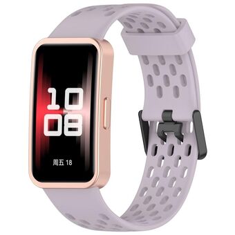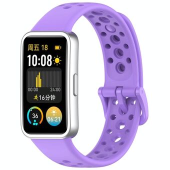 For Huawei Band 9 / 9 NFC / 8 / 8 NFC Hole Style Dual Black Buckle Silicone Watch Band(Lavender Purple)