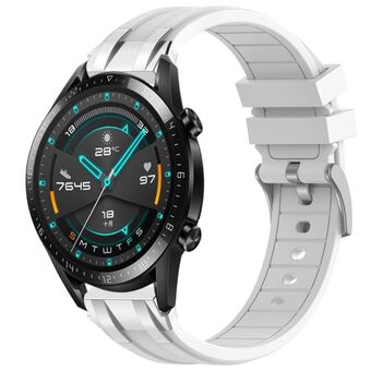 For Huawei Watch GT2 46mm 22mm Quick Release Silver Buckle Royal Silicone Watch Band(White)