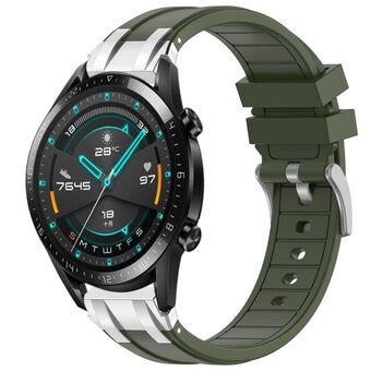 For Huawei Watch GT2 46mm 22mm Quick Release Silver Buckle Royal Silicone Watch Band(Olive Green)