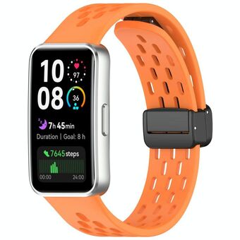 For Huawei Band 10 / 9 / 8 Hole Style Fold Magnetic Buckle Silicone Watch Band(Orange)