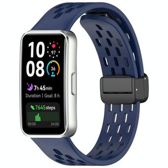 For Huawei Band 10 / 9 / 8 Hole Style Fold Magnetic Buckle Silicone Watch Band(Dark Blue)