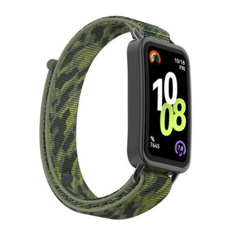 For Huawei Band 10 / 9 / 8 Metal Connector Nylon Loop Hook and Loop Fastener Watch Band(Camouflage Green)