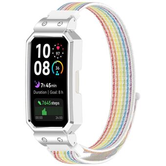 For Huawei Band 10 / 10 NFC / 9 / 9 NFC Watch Frame Integrated Nylon Loop Watch Band(Seashell+Silver)