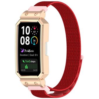 For Huawei Band 10 / 9 / 8 Metal Connector Nylon Loop Hook and Loop Fastener Watch Band(Hibiscus Pink)