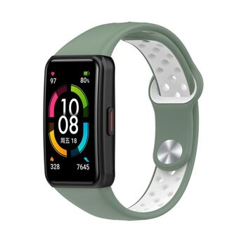 Λουρί ρολογιού σιλικόνης διχρωμίας με ανάποδη πόκα για Honor Band 7 (Πράσινο Λευκό)