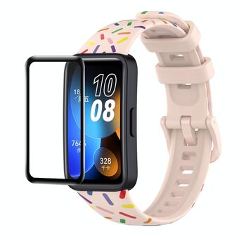 For Huawei Band 8 / 9 ENKAY Hat-Prince Full Coverage Screen Protector + Adjsutable Silicone Sport Loop Strap Watchband(White) (ENKAY)