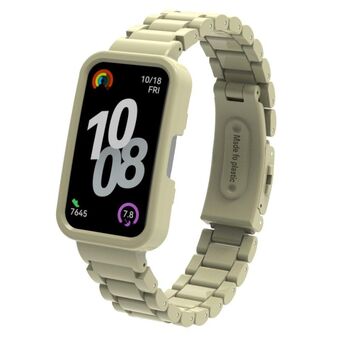 For Huawei Band 8 / 9 / 10 Watch Frame Integrated Three Beads Plastic Watch Band(Apricot)