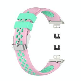 For Huawei Watch Fit 18mm Clasp Style Silicone Two-color Watch Band(Pink+Green)