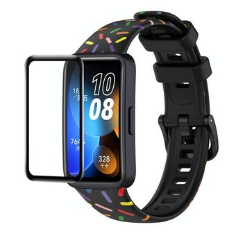 For Huawei Band 8 / 9 ENKAY Hat-Prince Full Coverage Screen Protector + Adjsutable Silicone Sport Loop Strap Watchband(White) (ENKAY)