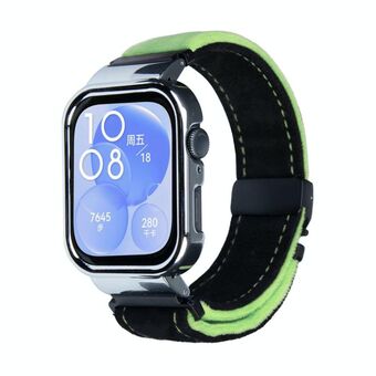 For Huawei Watch Fit3 Brushed Metal Silver Frame Watch Band(Black Grass Green)