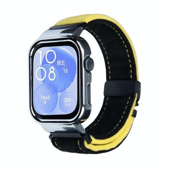 For Huawei Watch Fit3 Brushed Metal Silver Frame Watch Band(Black Yellow)