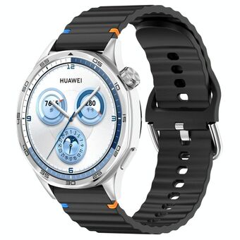For Huawei Watch GT 5 46mm Wavy Grain Stitched 22mm Silicone Watch Band(Black)