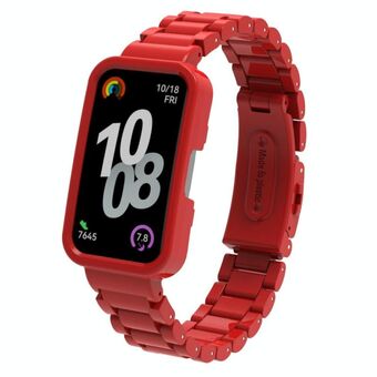 For Huawei Watch Fit3 Brushed Metal Silver Frame Watch Band(Black Rose Red)