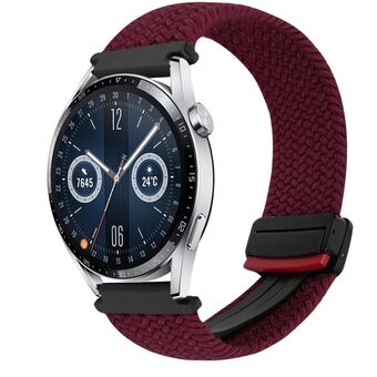 For Huawei Watch 3 22mm Magnetic Buckle Braided Watch Band(Wine Red)