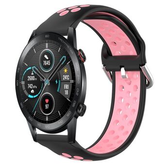 Για Honor Magic Watch 2 46mm 22mm Αθλητισμός Δύο χρώματα χάλυβα πόρπη σιλικόνης ρολόι μπάντα (ροζ + λευκό)