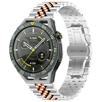 Για το Huawei Watch GT4 / GT3 / GT2 / GT 46mm Τρία στελέχη HW πόρπη μεταλλική ζώνη ρολογιού (ασημένιο χρυσό)