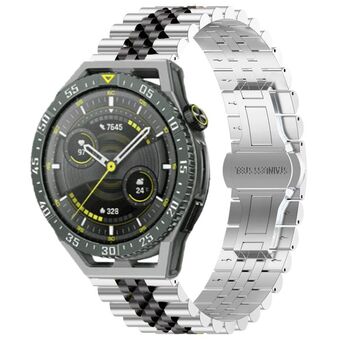Για το Huawei Watch GT3 SE Five Bull Half Round Stainless Steel Watch Band + Εργαλείο αφαίρεσης λουριού (Ασημί+Μαύρο)