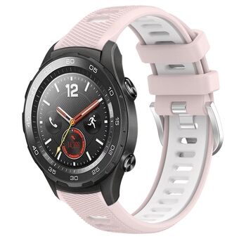 Για το Huawei Watch 2 20mm Αθλητισμός δύο χρωμάτων χάλυβα πόρπη σιλικόνης ρολόι μπάντα ρολογιών (ροζ + λευκό)