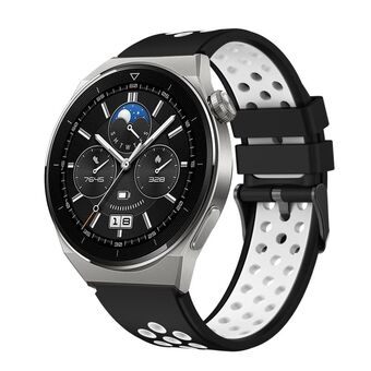 Για το Huawei Watch GT3 Pro 46mm Δύο χρώματα στρογγυλή τρύπα σιλικόνης ρολόι μπάντα ρολογιού (μαύρο λευκό)