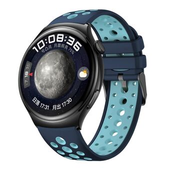 For Huawei Watch 4 Two Color Round Hole Silicone Watch Band(Lake Cyan)