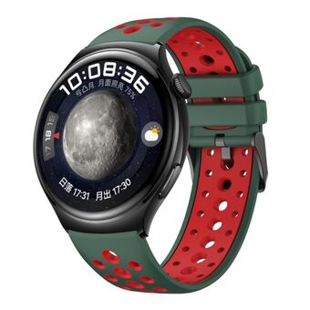 For Huawei Watch 4 Two Color Round Hole Silicone Watch Band(Dark Green Red)