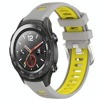 Για το Huawei Watch 2 20mm Αθλητισμός δύο χρωμάτων χάλυβα πόρπη σιλικόνης ρολόι μπάντα ρολογιών (γκρι + κίτρινο)