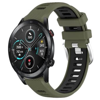 Για Honor MagicWatch2 42mm 20mm Αθλητισμός Δύο χρώματα χάλυβα πόρπη σιλικόνης ρολόι μπάντα (Στρατού πράσινο + μαύρο)